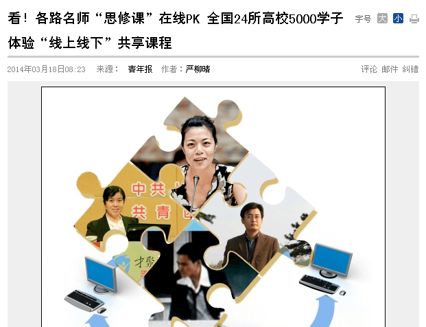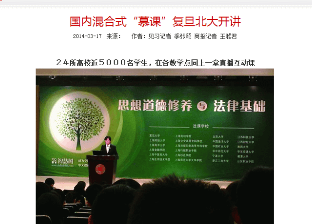 在众人高呼“慕课来袭”时,智慧树网共享课程已成功运行三学期,累计让遍布全国的数万学生受益。名校名师名课程、线上线下相结合,以及翻转课堂等全新的教学理念与方式,不仅乐嗨了师生,也吸引了人民网、中国新闻网、凤凰网等诸多媒体的关注和报道,进而引发对中国式慕课的更多讨论和思考。