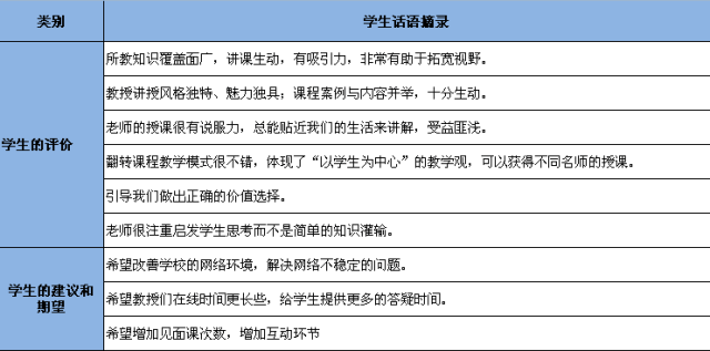 如果说满意度数据是一个宏观的呈现,那么,从微观视角而言,亲身参与共享课程学习的学生个体是如何看待的呢?智慧树网从成千上万条的学生点评中,选择了以下学生意见表达较为集中的一些论述,以供分享。